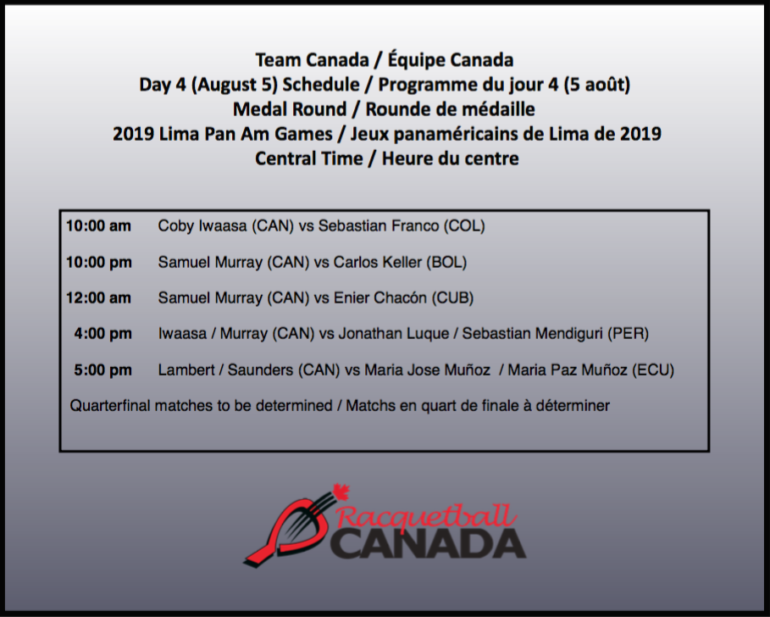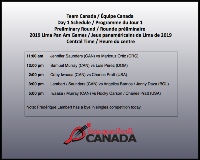 Click here for complete draws and results for Team Canada at the Pan Am Games. Check out the International Racquetball Federation Facebook Page for live-streaming.